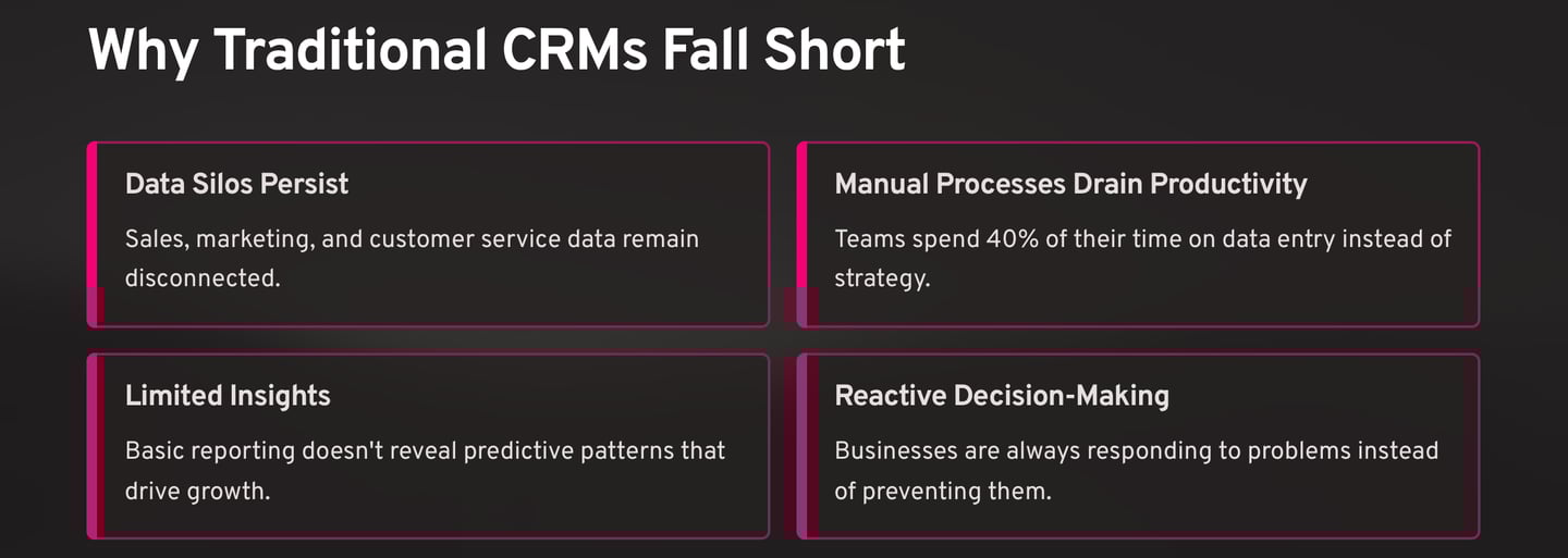 Most business owners I work with start with traditional CRM systems, thinking they'll solve their customer management challenges. But here's what happens: