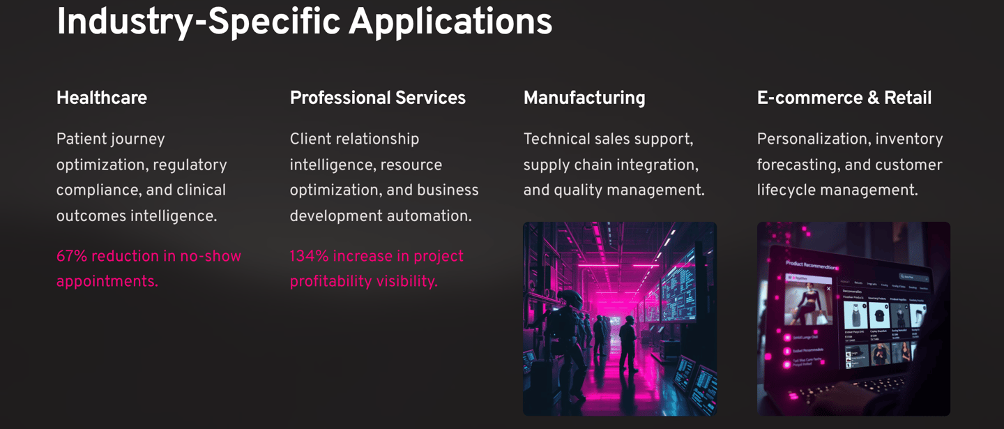 Revenue Forecasting Machine learning models analyze historical data and current pipeline activity to provide accurate revenue predictions with confidence intervals.