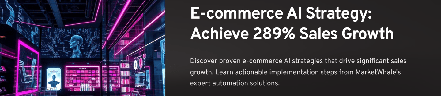 Discover proven e-commerce AI strategies that drive 289% sales growth. Learn actionable implementation steps from MarketWhale's expert automation solutions.